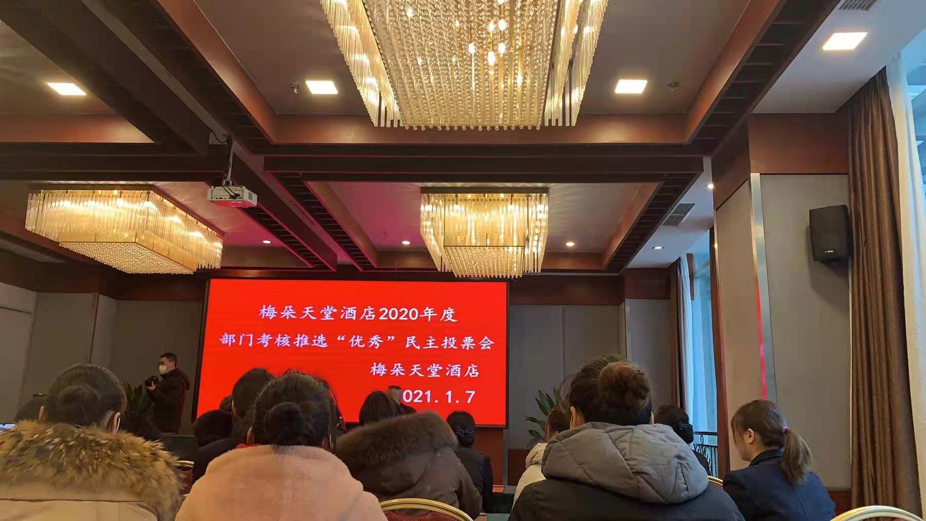 2021年1月7日阿师资产公司梅朵天堂酒店组织全酒店员工,召开了2020年度部门考核推选“优秀”民主投票会,本次会议通过全员参与民主投票方式,本着公平、公证、公开的原则进行民主推荐,本次共推选出了酒店综合部员工梁涛同志等6名员工为酒店2020年度考核优秀人员,推荐出的人员在随后将在公司内部进行公示。