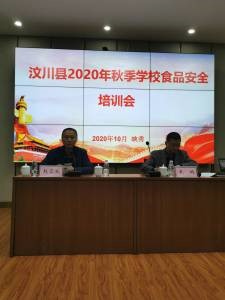 为进一步做好校园食品安全工作,汶川县市场监督管理局赵蕴威等3位同志,于2020年10月30日上午10:00在映秀“家国情怀”会议中心会议室召开了汶川县2020年秋季学校食品安全培训会,汶川县所有中小学校及我校的全体食品安全员及部分餐饮食品经营户,参加了此次培训。