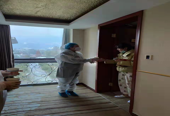 图5:医务人员为正在进行医学隔离管理的师生送药上门。