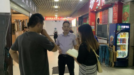 2023年9月5日下午三时,由资产经营公司总经理唐禹带领组织公司各部门开展对开学前校园商铺安全、卫生大检查。