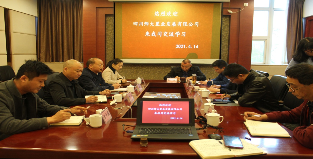 交流会议一开始,双方公司领导分别介绍了出席本次交流活动的相关人员。随后,四川师大置业公司汪总经理介绍了四川师大置业公司的基本情况和主营业务范围,并说明本次来到阿师资产公司学习交流活动的目的:主要是在学校商铺管理方式方法、校园服务业态规划和经营性资产管理方面内容,进行相互交流和考察学习。资产公司唐禹就四川师大置业公司同行感性趣的有关问题进行了一一问答,公司董事长黄成兵、副总秦晓松和公司相关部门负责人,在交流过程进行情况补充回答。最后,双方公司就各自的公司经营性资产的管理和校园服务业态等方面的管理、具体做法和心得,进行了广泛的学习交流,同时四川师大置业公司对我公司的经营方向提出了多项诚恳的建议。